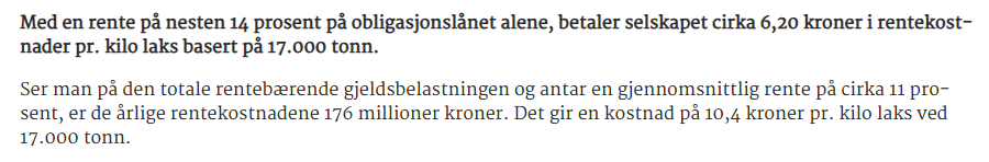 Dette er gammelt nytt. Hva er det journalisten vil frem til? At selskapet er en konkurskandidat grunnet gjeldsnivået? Vel, her tar han i allefall grundig feil. Her er det hovedaksjonærer som garantert fortsatt kommer til å supportere selskapet også fremover. De har tatt de emisjonene som har kommet, til kurser “at market”. Hadde det vært finansinvestorer som dominerte, ja da hadde det kanskje vært dobbelt så mange aksjer i selskapet og kursen hadde vært det halve (men med samme marketcap). Hovedaksjonærene er et eksempel på hvordan de tar vare på alle aksjonærene og ikke haier til seg selv. Dette har journalisten ikke sett eller kommentert.