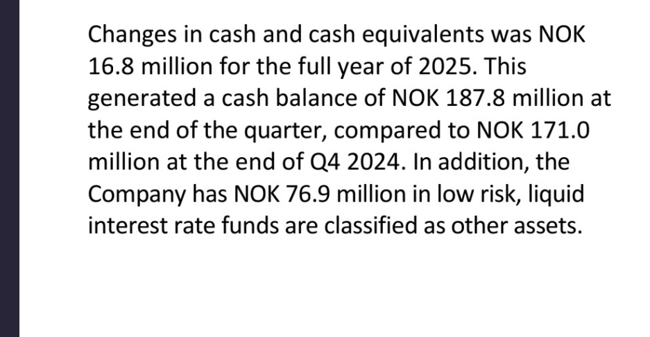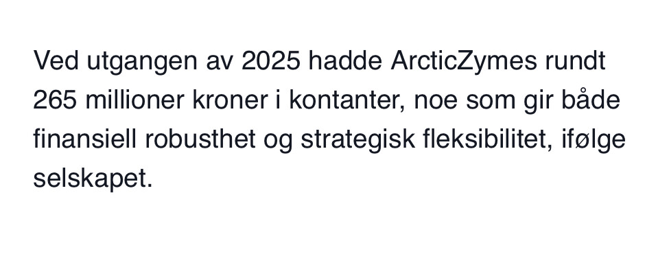 As of end of 2025, ArcticZymes held approximately NOK 265 million in cash,