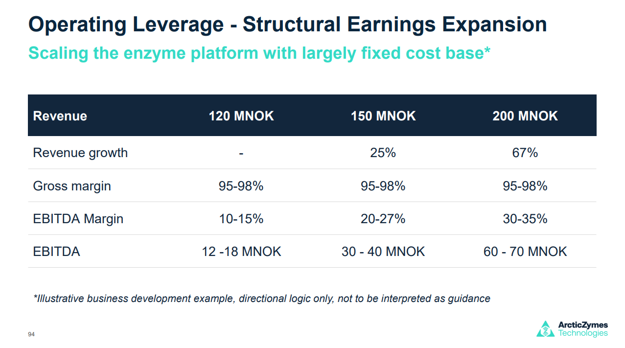 As revenue grows, ArcticZymes expects to benefit from operating leverage driven