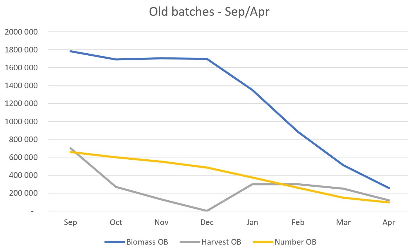 Her er pitchen til management som følger: vi selger fisk nå som ble foret opp under dårlige driftsforhold; de nyeste batchene våre blir først høstet i slutten av juni/juli når de når snittvekt på minst 2.7 kg. Nesten all fisk over 3 kg i de nyeste batchene vil gi ca USD 12 kr kg (mot snitt på ca USD 7 nå). Alt over USD 8.4 gir overskudd.