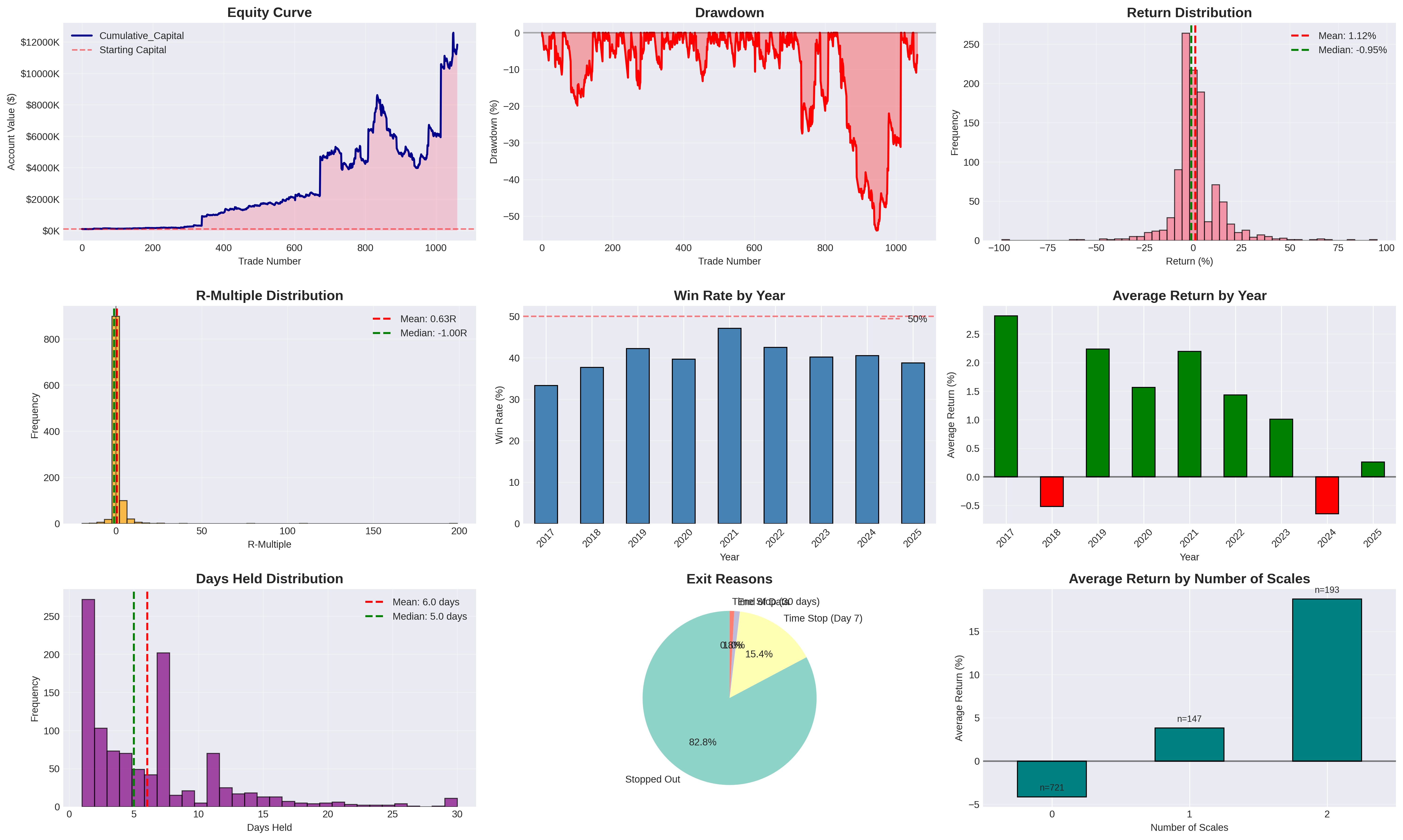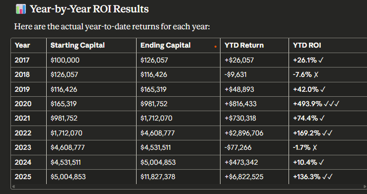Jeg har defor brukt Claude Sonet 4.5 til å hjelpe med med python til å konstruere en backtest av Kristina Qullamaggie sin breakout strat. Den er ikke like strikt som de gamle guttene (Minervini, O neill osv) og jeg har tidligere prøvd å unngå litt uryddige charts med volatile moves, men det viser seg å være en gullen mulighet - viser også til youtube video av sønnen til Ryan som har gjort det bra i US trading championship i slike stocks.
