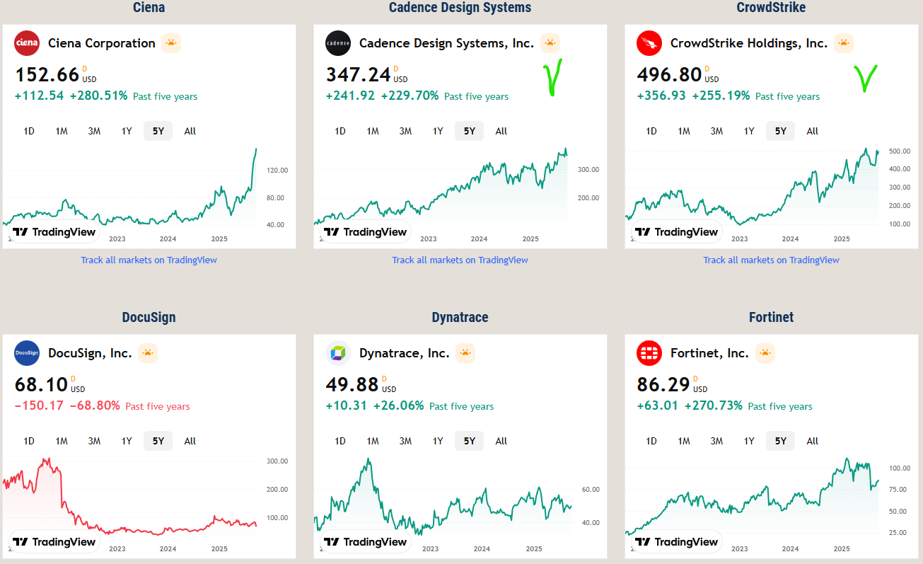 Hvis man fokuserer på rene AI-selskaper, så tipper jeg at når denne indexen begynner å vise svakhet så er det kan det gå fort. Den så slik ut i uke 36, ca 1 måned siden: