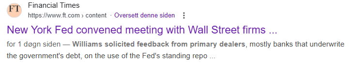 Men først, hastemøtet handler selvsagt om SOFR, som jeg ikke får lest noe om på velrennomerte nyhetsformidlere som Reuters fordi de formidler det så tørt de bare kan: