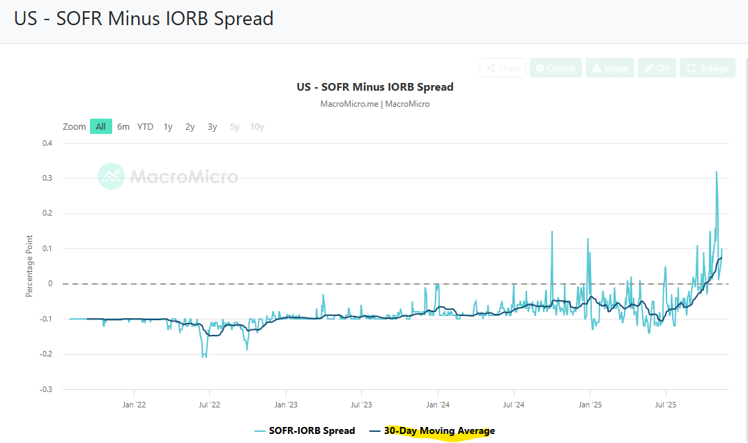 SOFR IOBR spread positiv siden 9. oktober, 30 dager moving average stigende og 2 siste avlesninger over 30dma