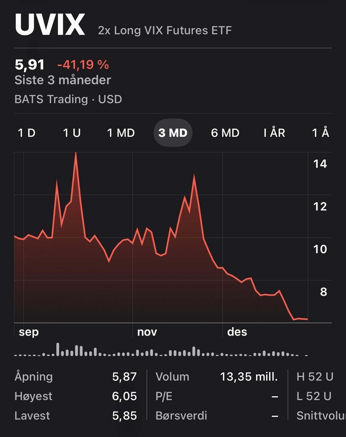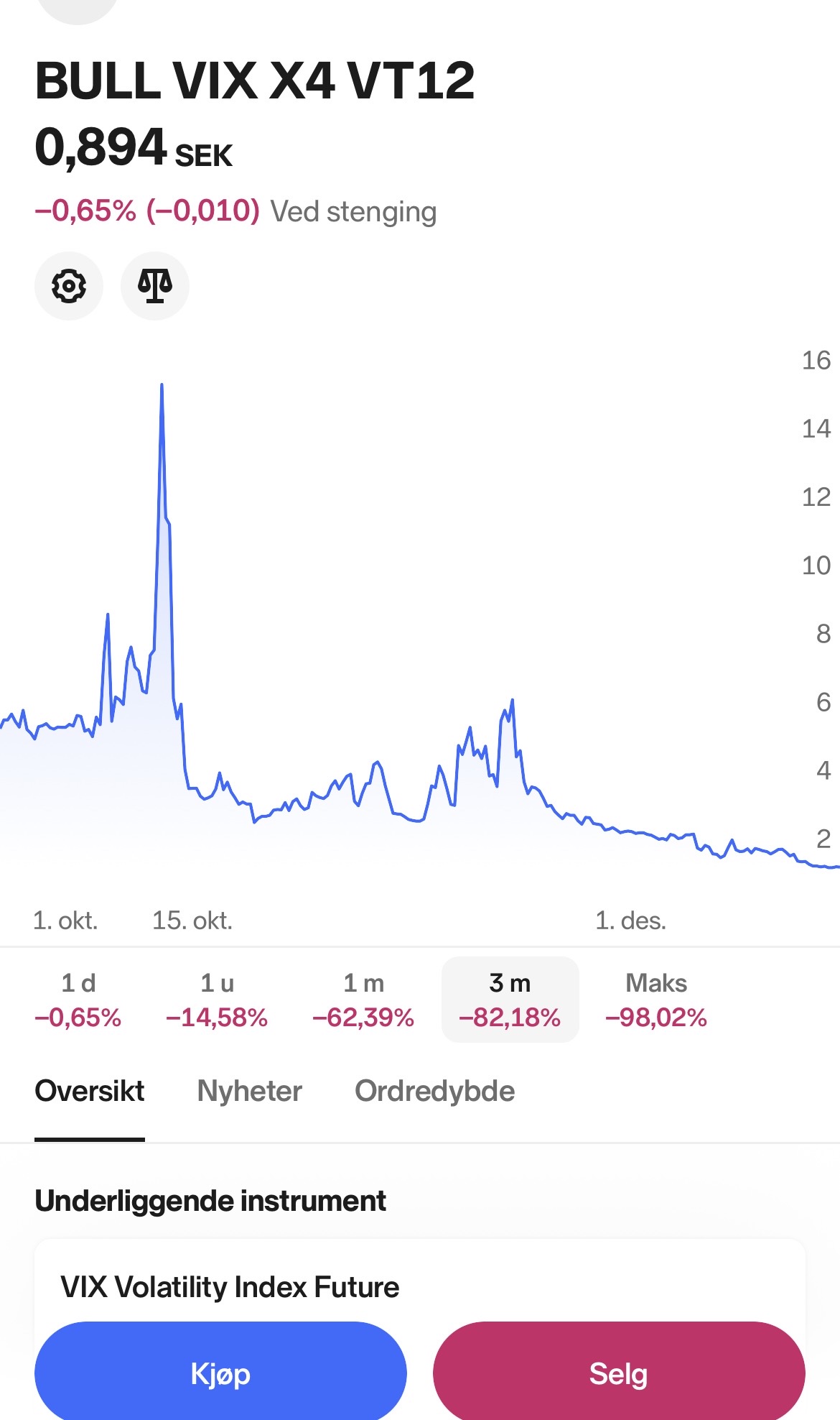 Joda, men siste to uker er VIX Futures opp 2%, mens x4 produktet som Piggen refererer til er -45%.