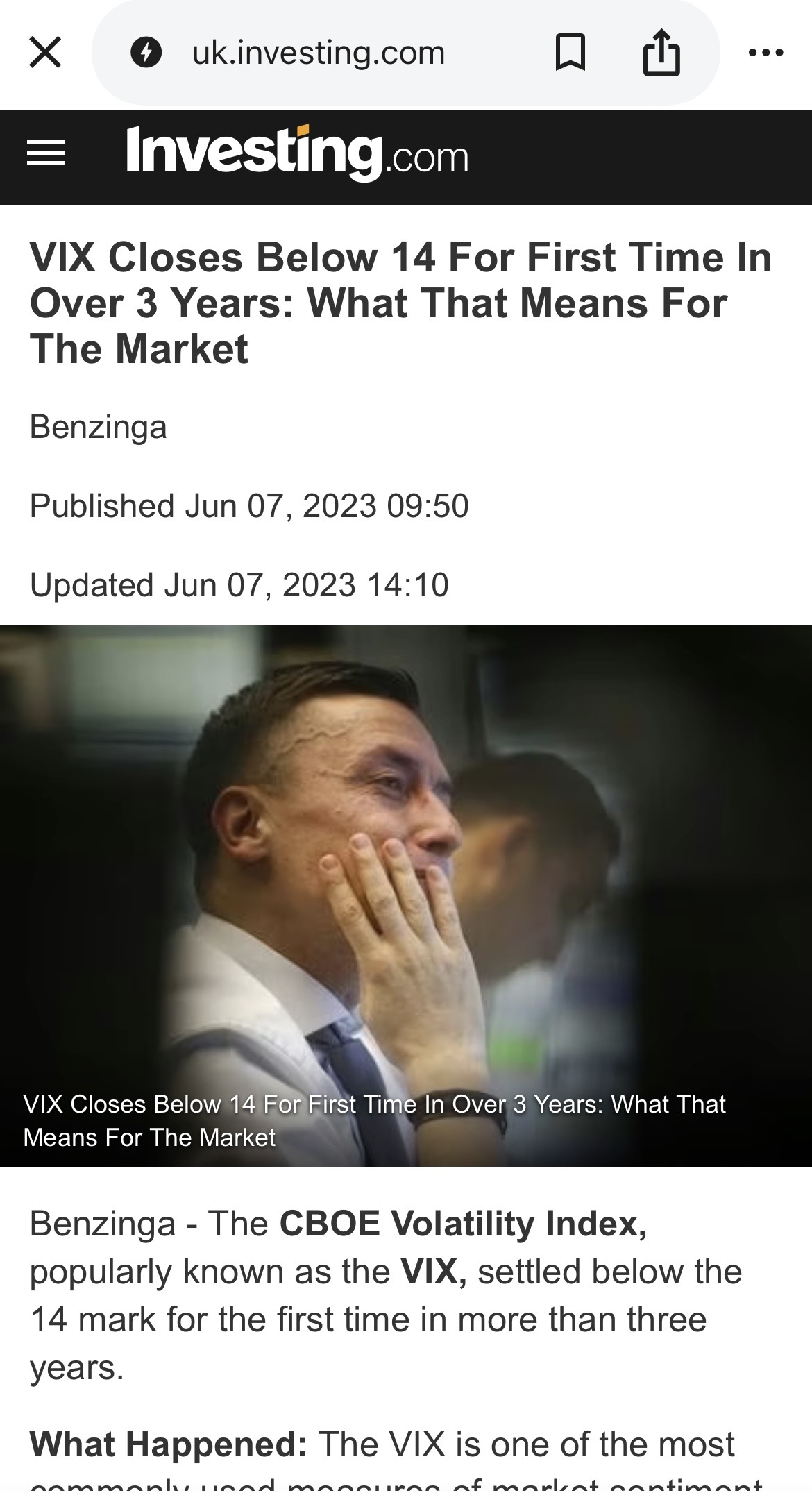 Her er artikkel fra 2023, da ble det trukket frem at VIX var under 14 for første gang på tre år.