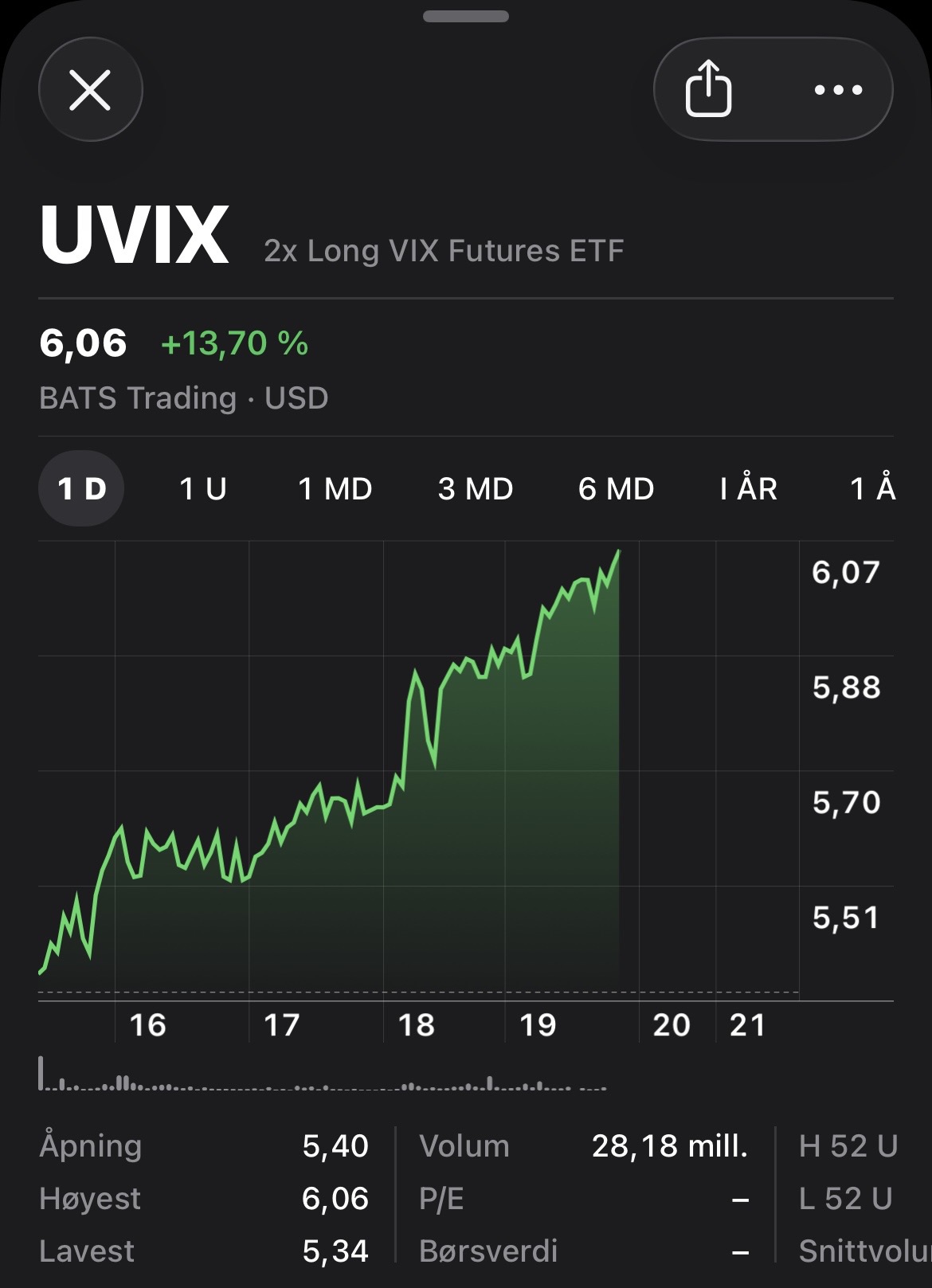 Snudde shorten fra morgenen i dag til long, jeg kommer snart til å kun være investert i VIX…