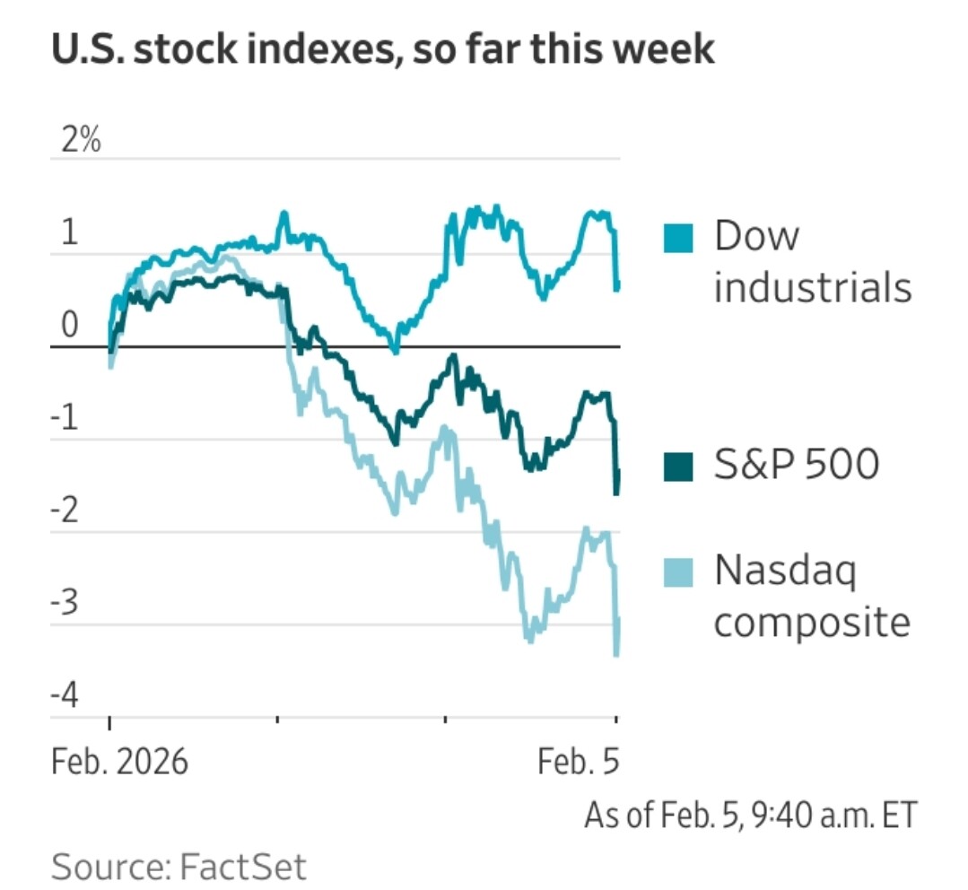 Det var spesielt teknologisektoren som fikk juling da investorer flyktet fra «dyr programvare»-gruppen og selskaper eksponert mot kunstig intelligens (AI)-disrupsjon. Informasjonsteknologi-kohorten så sitt nest største nettosalg på fem år.