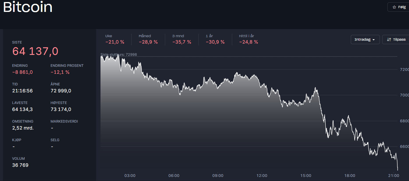 Nå er jo gull skikkelig i vinden og fortrukket av sentralbanker og mannen i gata, men tror kanskje flere og flere ser på Bitcoin som digitalt gull, og mitt gjett er også at prissettingen vil bli mindre volatil etter hvert som dette setter seg. Litt som gull, som nå prøver å finne nytt stabilt prisnivå.