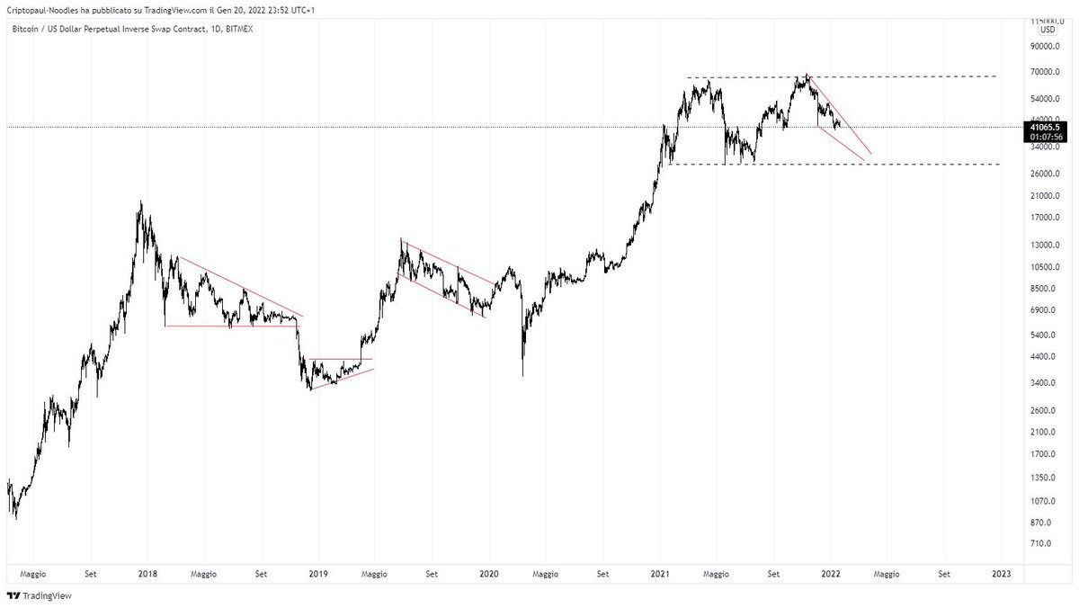 Jeg bare kommenterer teknisk analyse. Fundamentalt er noe helt annet og jeg er usikker på hvor mye bitcoin og nasdaq egentlig korrelerer.