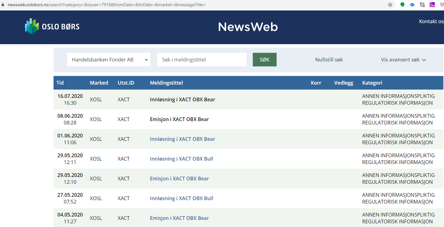 Emisjoner og innløsning i XACT OBX Bear (OBXEXDBEAR) utføres nok ut fra mengden nettokjøp eller nettosalg som market maker gjør i løpet av dagen.