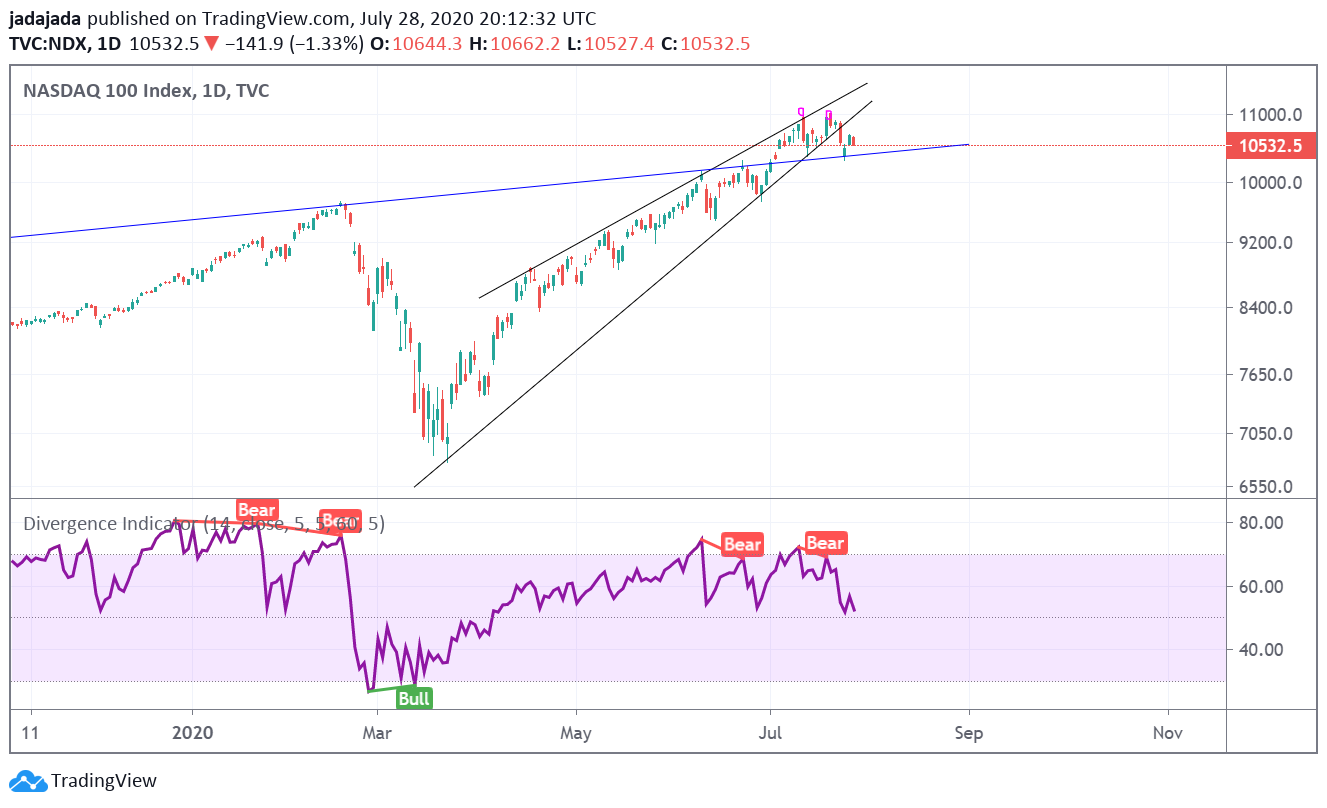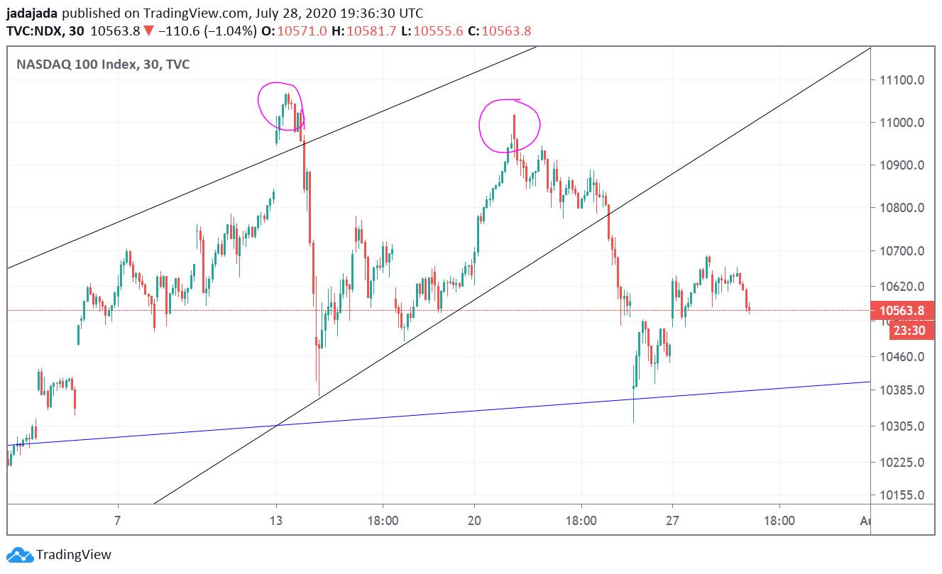 NDX danner toppformasjon? Mer og mer tyder på at NDX er i ferd med å toppe ut: