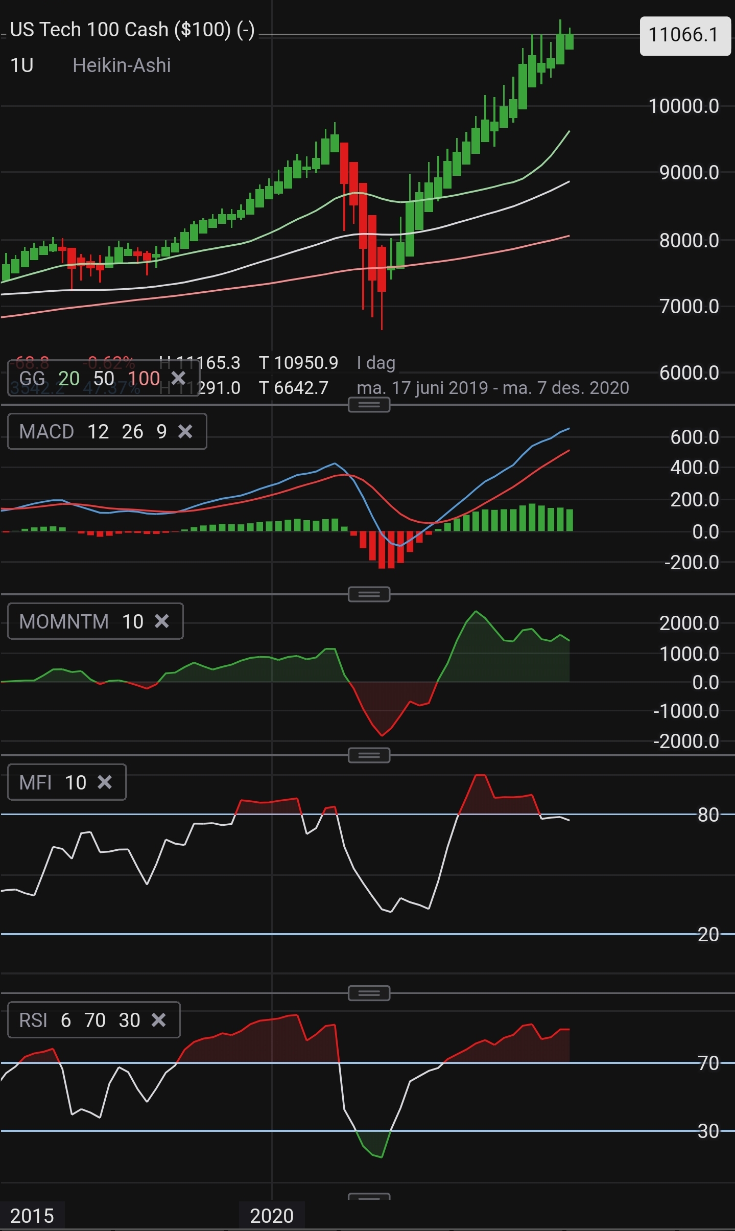 RSI lagde lavere topp og er på vei ned, momentet og pengeflyten har allerede skiftet retning og jeg venter bare på at MACD krysser.