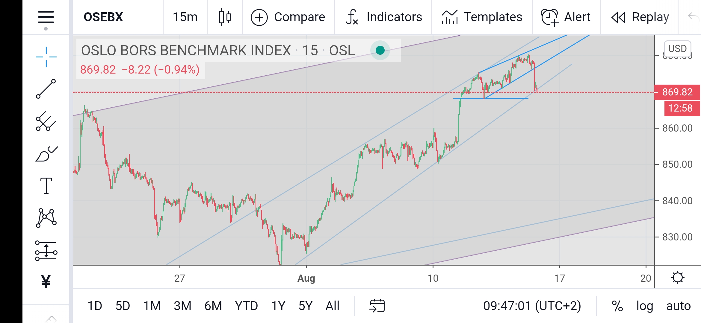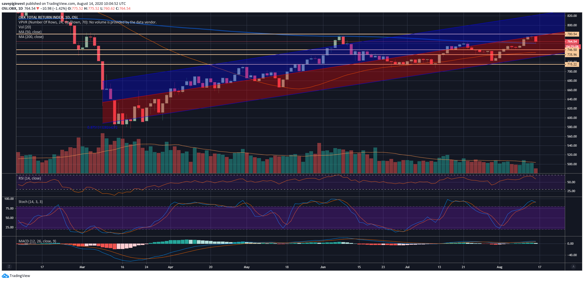 Nå er det foreløpig ikke krise for bulls. Så lenge vi holder den stigende trendlinjen kan man tolke formasjonen bullish (ascending triangle). Gir det to uker til, så tror jeg inn mot september det meste vil være avklart ifht. retning. Det blir penger i kassen tilslutt!