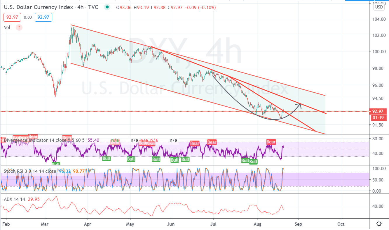Dollaren kortsiktig overkjøpt, men brudd opp gjennom her vil være bearish for aksjer.