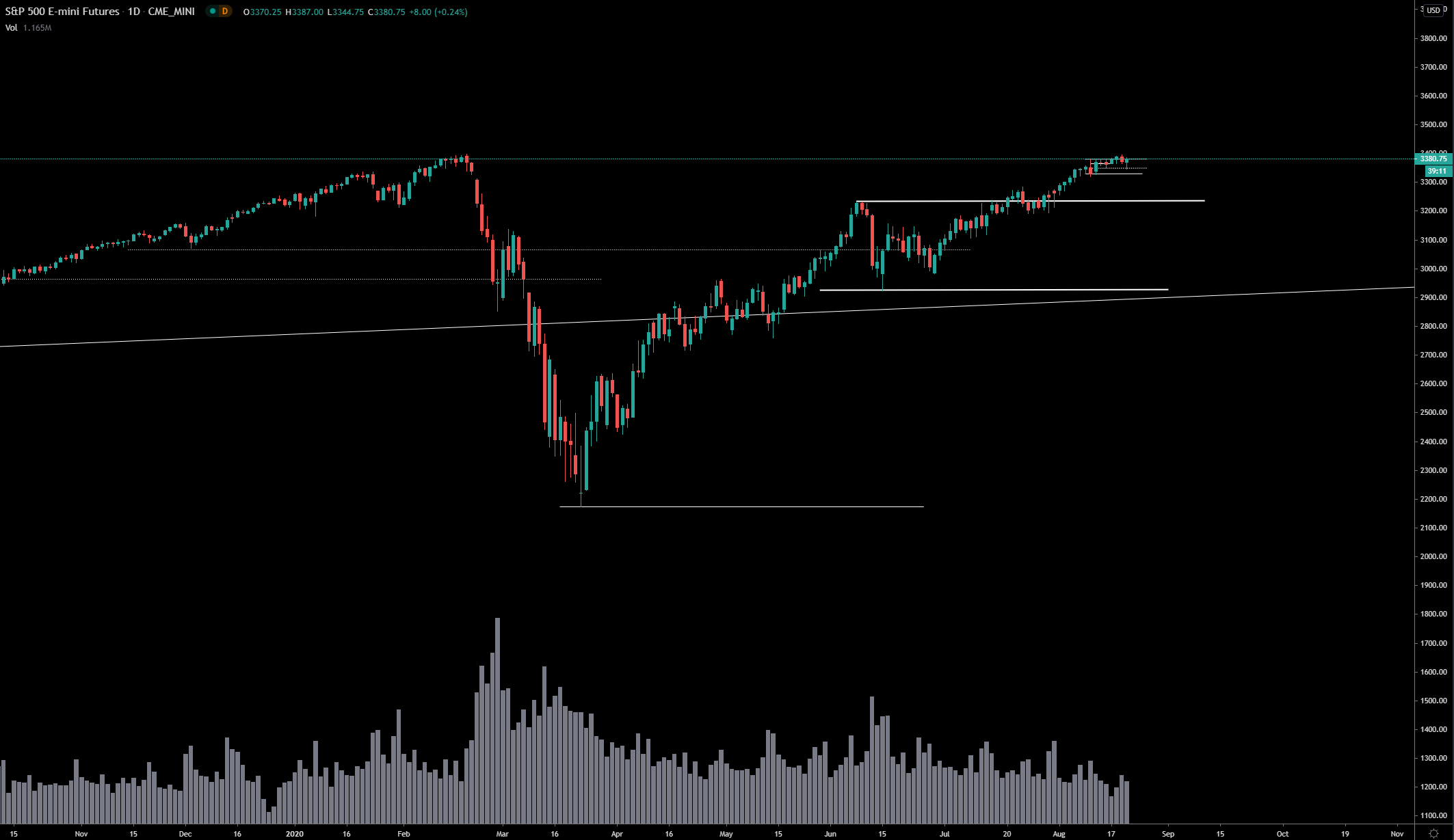 Det jeg er usikker på er om vi allerede er inne i en form for en større tradingrange. Da vi hadde en korreksjon på ca 10% tidlig Juni. Største korreksjonen siden oppturen, med volum i tillegg.