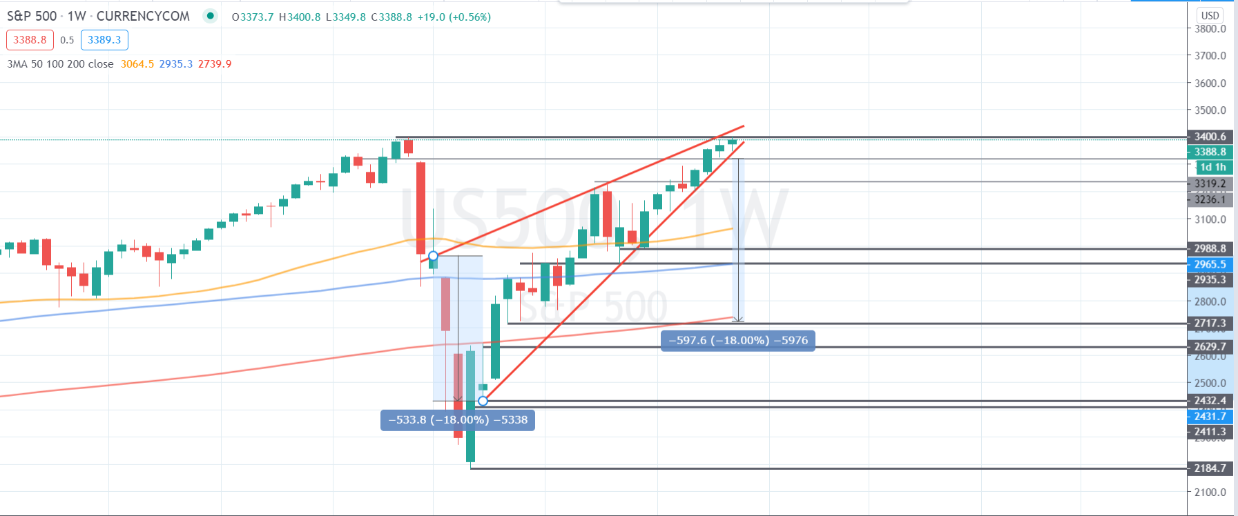 Får vi brudd ned, kan vi fint gå ned til 3200 området uten et jeg vil si det hadde vært krise i det store bildet. Er ikke mer en 4.2% ca. Dette er 1 dags chart btw.
