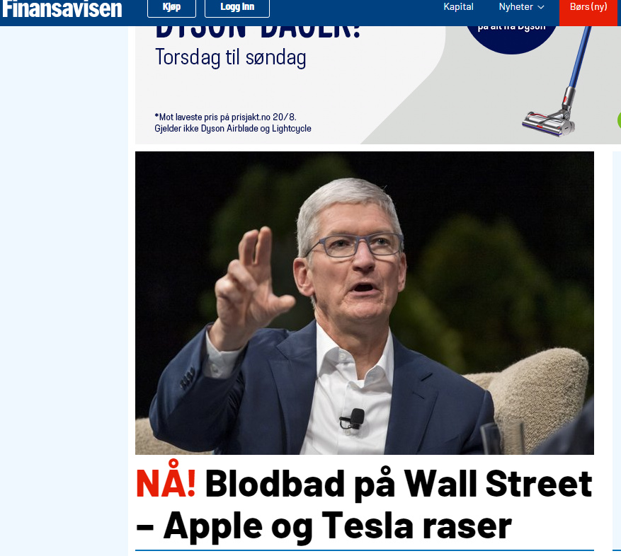 Fra intradag top for noen dager siden til nå er tesla ned litt i overkant av 18%