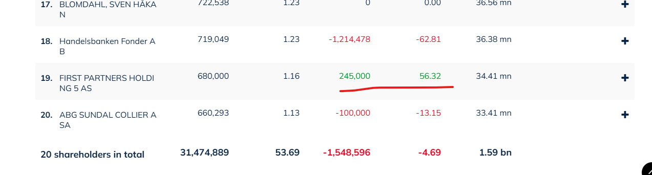 Ellers viser nyeste aksjonærlistene at “kontorfellesskapet” også benyttet anledningen til å kjøpe her