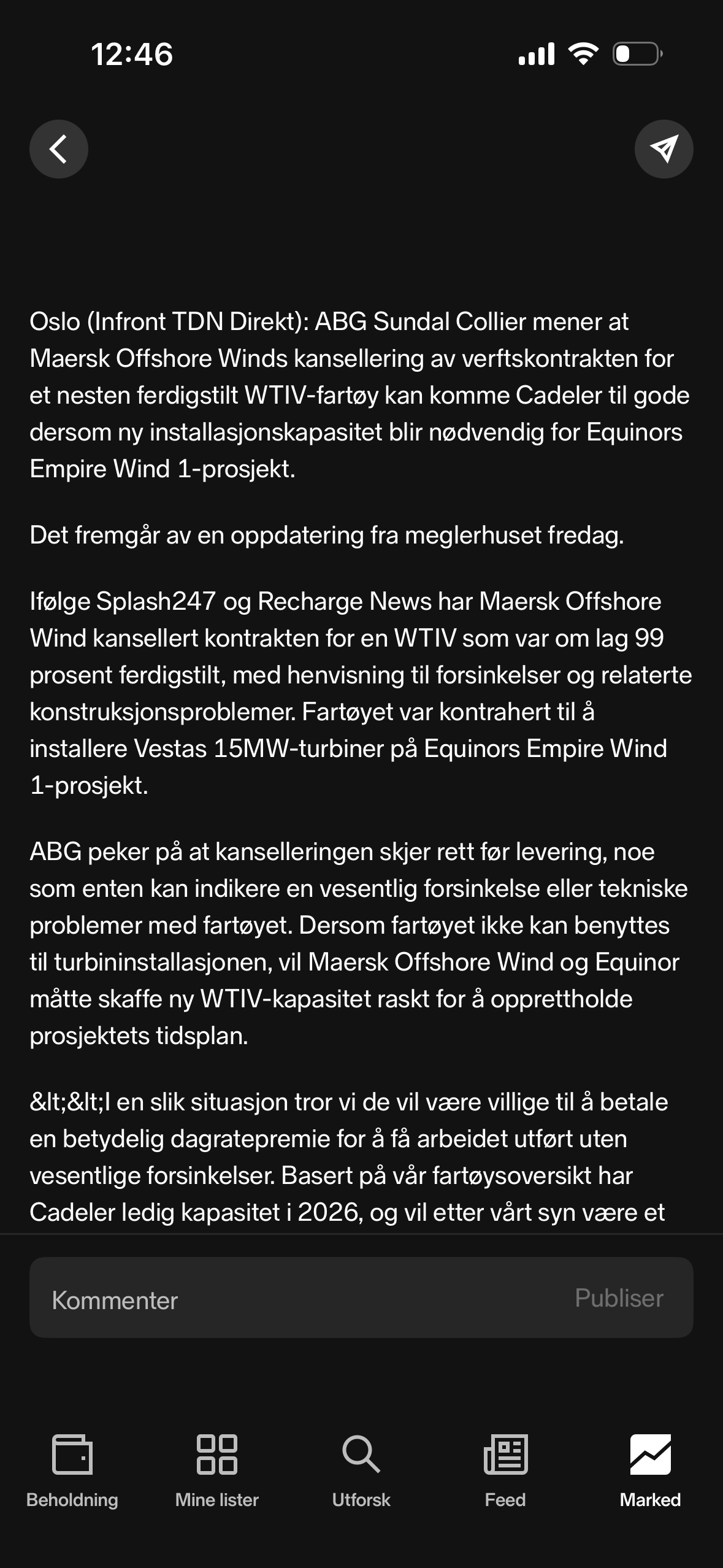 Ser det nå ja. Totalt. 585MW. Positivt for sektoren at man får nok en bekreftelse på at det skjer ting. Men er det ikke litt rart at CADLR virker å reagere mer på Vestas´ kontrakter enn egne?