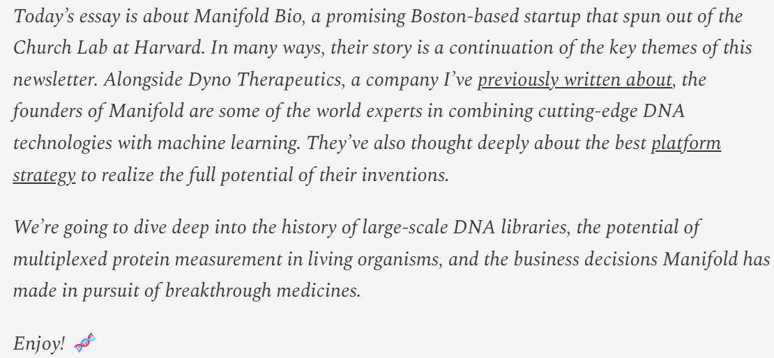 Eksisterende innovasjon : Mange oppstartsbedrifter sikter mot kapital eller en konkret exitstrategi. Markedet er for øyeblikket lite, men vekstpotensialet er høyt. Til sammenligning er den amerikanske brikkeprodusenten Nvidia verdt mer enn hele bioteknologibransjen. Mens Nvidia har en markedsverdi på 4,7 billioner dollar, er det globale bioteknologimarkedet verdt rett under 2 billioner dollar. Markedsanalyseselskapet Grand View Research spår en markedsvekst i bioteknologibransjen på nesten 14 prosent til 3,88 billioner dollar innen 2030.