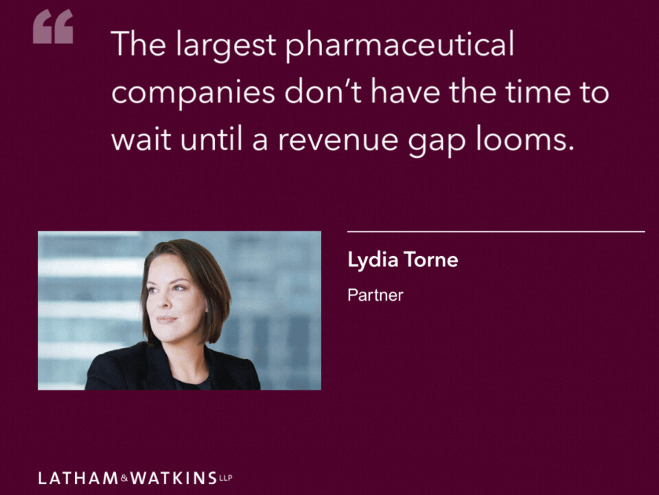 Med oppkjøpet av det amerikanske selskapet Avidity gjorde Novartis det største oppkjøpet i sin historie dette tiåret. Fordi selskaper er under press. Lydia Torne, partner i advokatfirmaet Latham & Watkins (jepp, hun med tommel opp), sier: De største farmasøytiske selskapene «har ikke tid til å vente til et inntektstab truer».