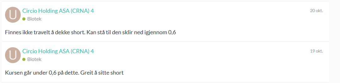 I tillegg er det vel en rekke eksempler på oppkjøp av selskaper i dette spacet til fantasillioner. Circio har en mcap på under 200 mnok. Et par tre, kanskje fire pølseboder med andre ord.
