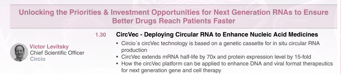 Når selskapet nå nevner VLP (Victor presentasjon) så har circvec fått enda et nytt bein å stå på. circVec-DNA-kassetten er fortsatt kjerneproduktet, men leveringskjøretøyene (vector) endres og blir enda mer kompatibel med ulike leveransesystemer. Det styrker posisjonen som en plattformteknologi. Kan ikke huske at selskapet har nevnt eller fokusert på VLP i tidligere presentasjoner ? Da kommer det kanskje mer om dette i v3.2. Før Jul ? Forhåpentligvis.