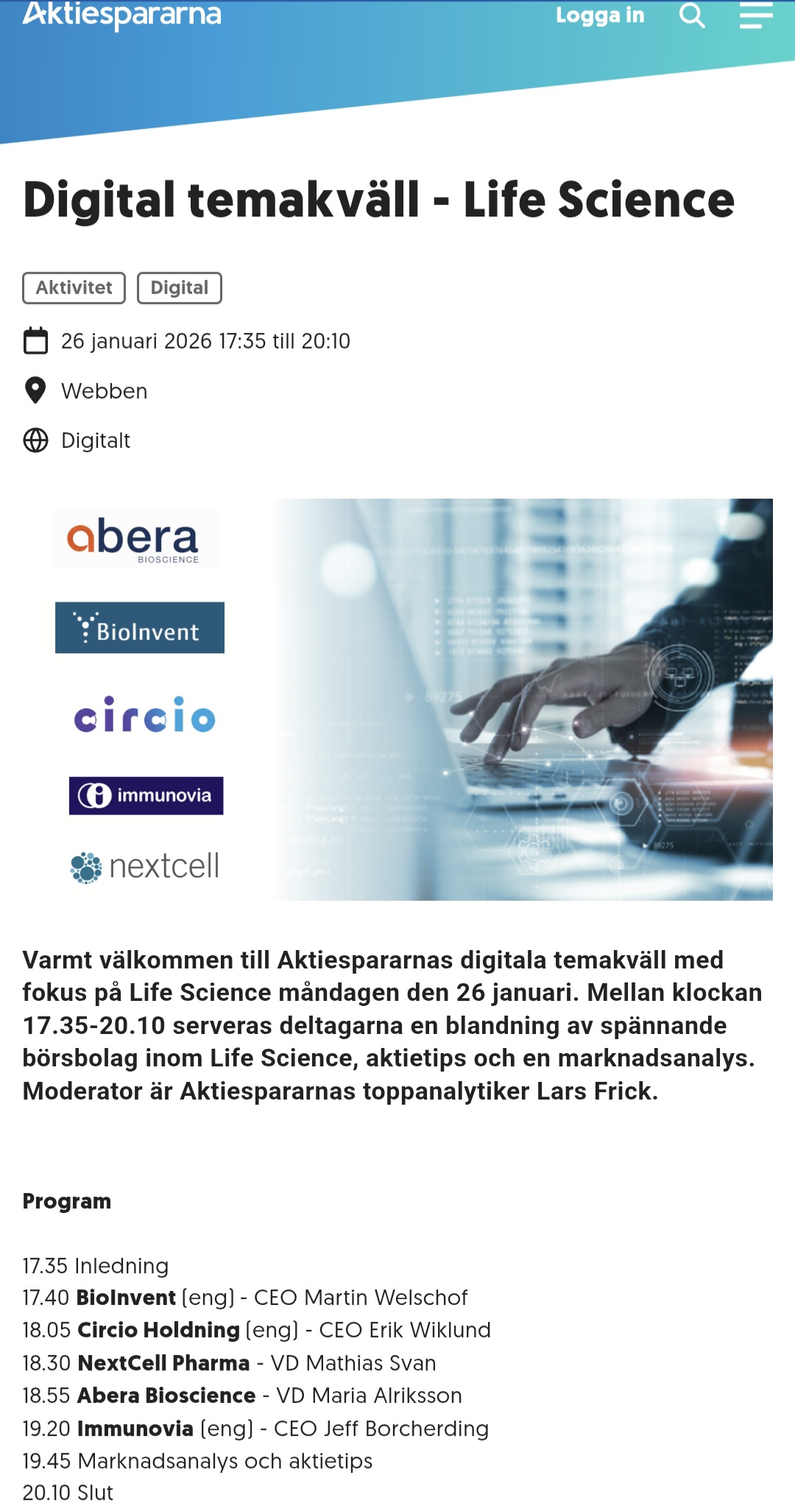 EW nevnte under intervjuet på Biostock.se at “kjærlighetsforholdet” med Big Pharma-selskapet som de nå samarbeider med startet i mars 2025. Det samsvarer godt med denne konferansen som de også selvsagt deltar på i år. Vi har vel ikke noe imot nye flørter, eller faste forhold for den del…?