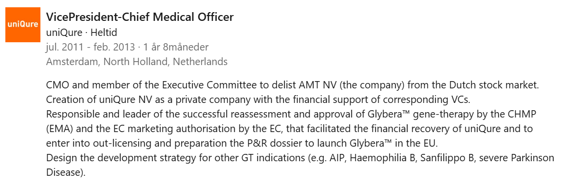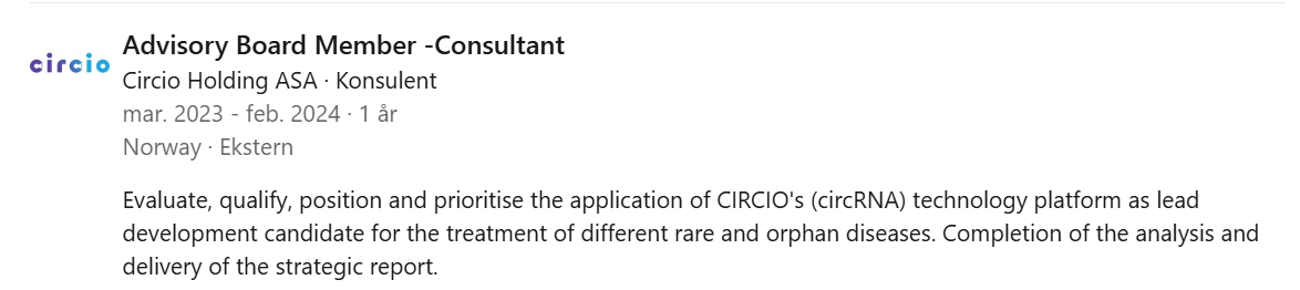 Et lite apropos om UniQure/Circio. Denne karen som følger Circio på LinkedIn: