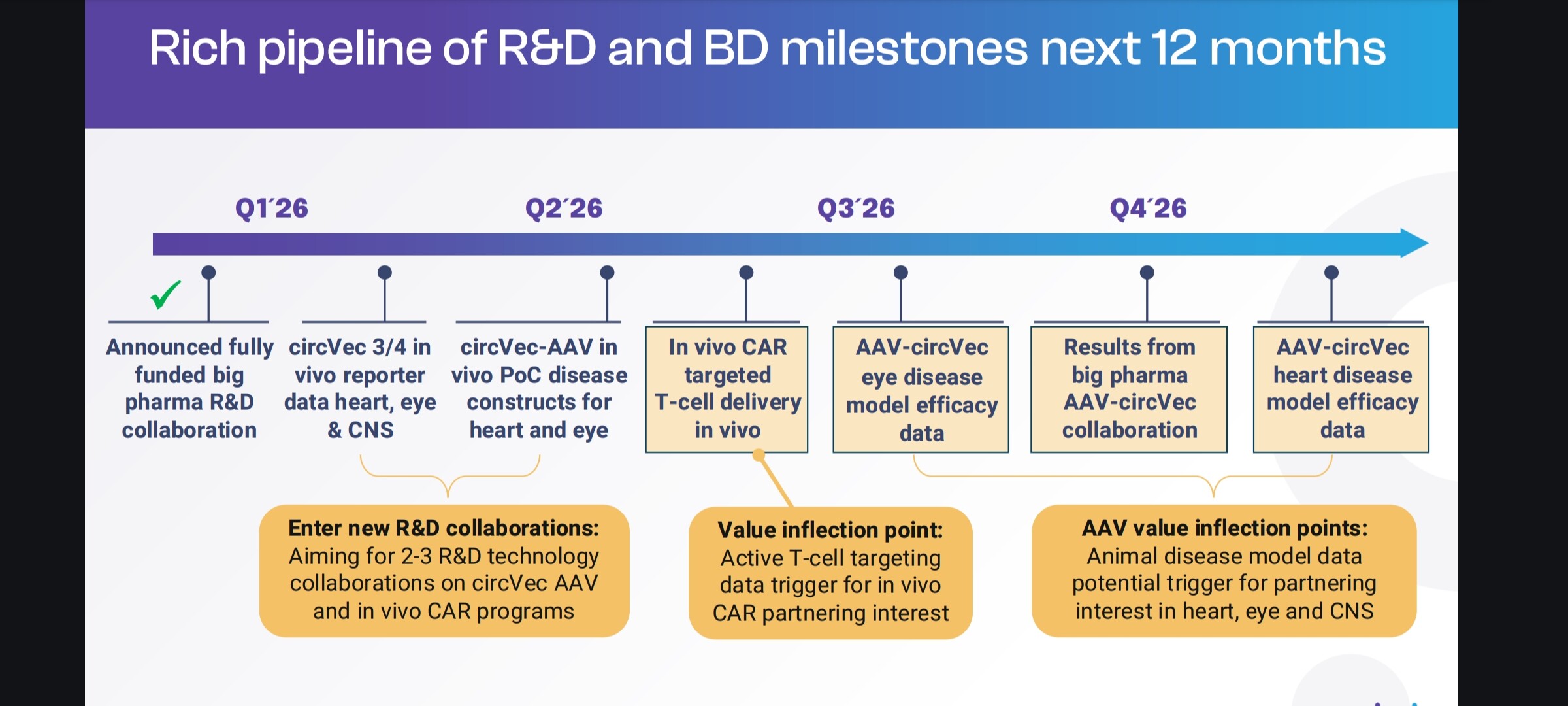 In summary, Analyst Group believes the new eye data materially strengthen circVec’s strategic positioning within AAV gene therapy. The expanded preclinical data package, demonstrating robust cross-tissue validation and mechanistic confirmation, enhances platform credibility and broadens circVecs potential applicability. In our view, the cumulative strength of the data is increasingly difficult for larger pharmaceutical companies to overlook, reinforcing Circio’s position in potential licensing discussions and supporting a more favorable negotiating dynamic as the platform advances toward disease-relevant milestones. The recently strengthened financial position further supports this trajectory by enabling continued development without near-term funding pressure. From a valuation perspective, the strengthened data package supports a gradual increase in the applied preclinical probability of success in our framework, which will positively impact the risk-adjusted valuation in future updates.