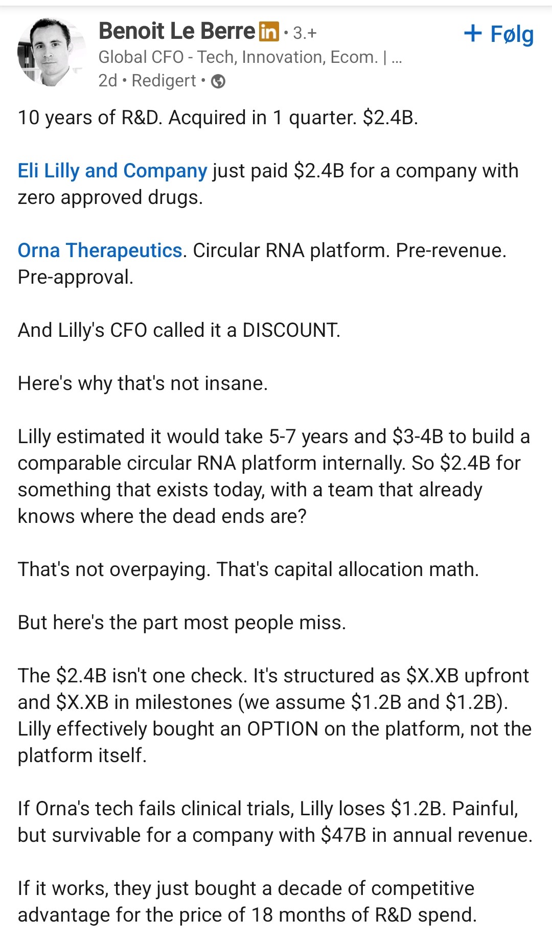 Hvis @MrKirie har rett så er det kun positivt at andre selskap tester ut circRNA, spesielt hvis de går på RNA-sporet.
