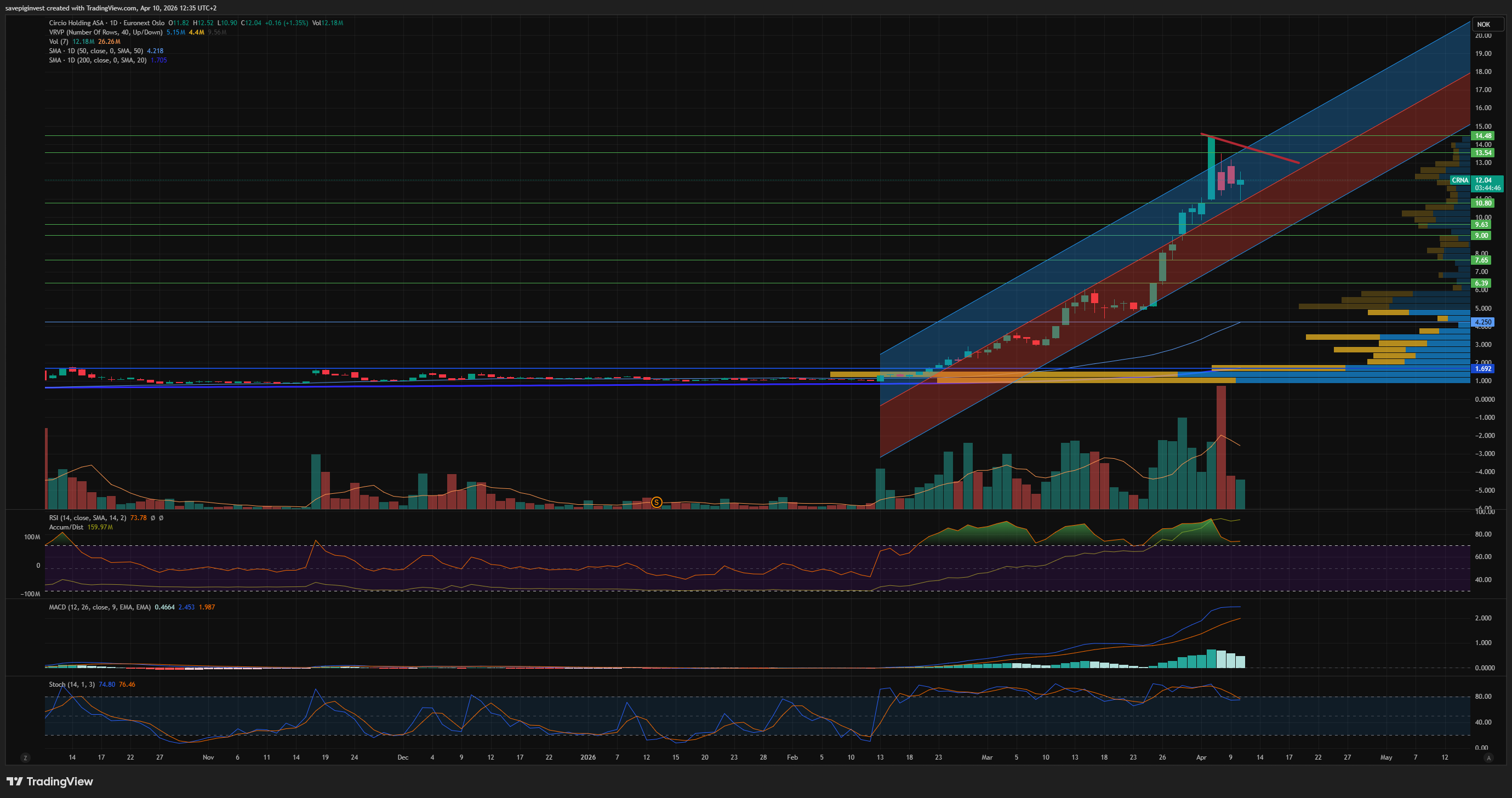 Ser volum begynner å synke litt, men fremdeles ligger den og koser seg i trenden sin og over emisjonskurs