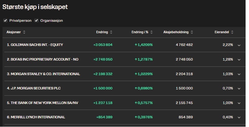 Alle er nominee kontoer. Ikke godt å vite hvem som ligger bak
