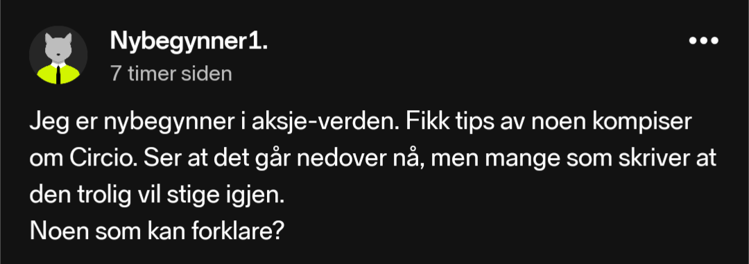 Min lille kjøpsordre utgjør under 2% av posten min totalt. Selvfølgelig er årsaken at hele Circio er volatilt før det kommer inntekter inn i bildet.