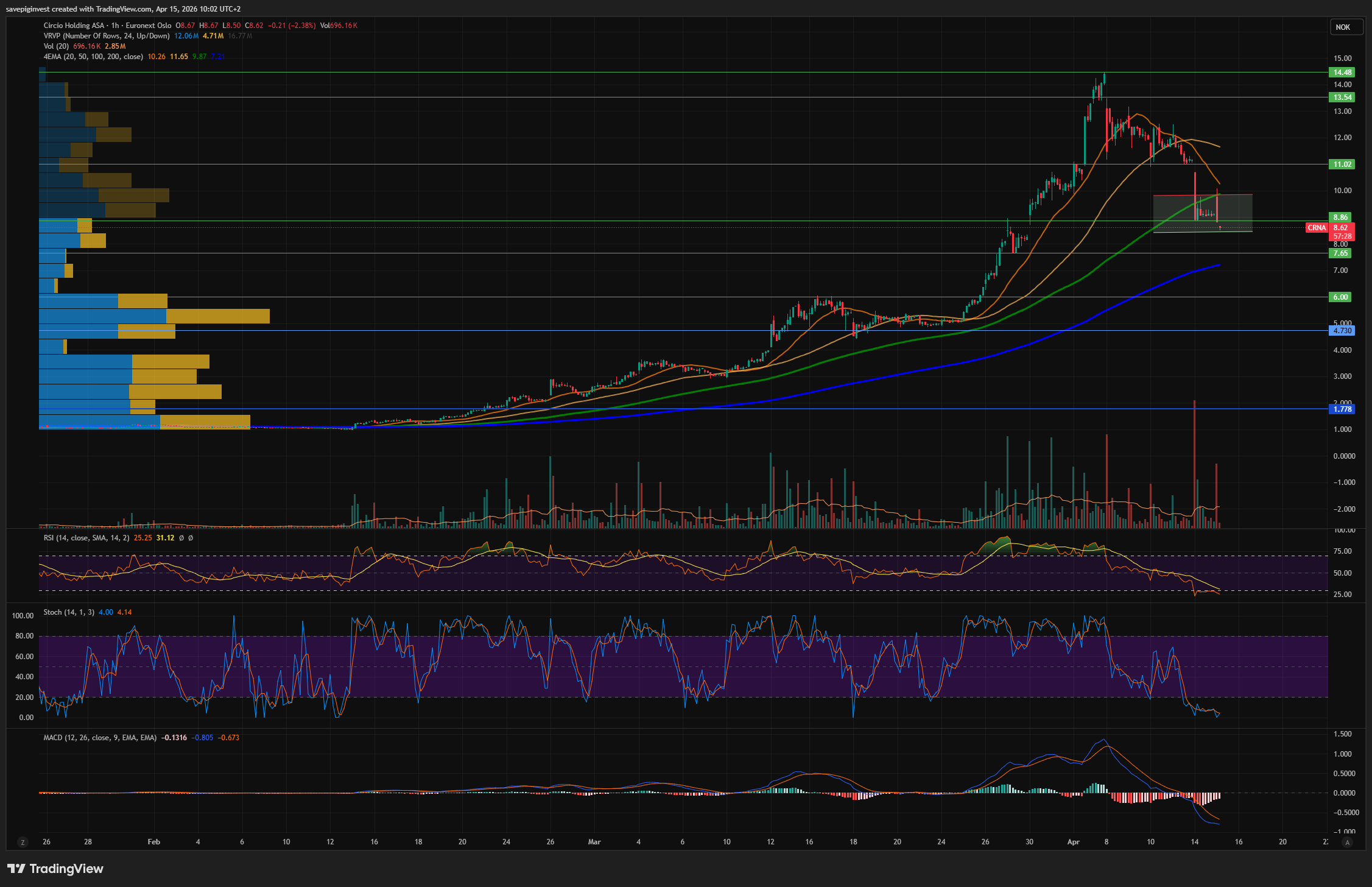 Short kan med trygghet jakte stoploss ned til 5-6kr, vertfall ihht volumprofil.