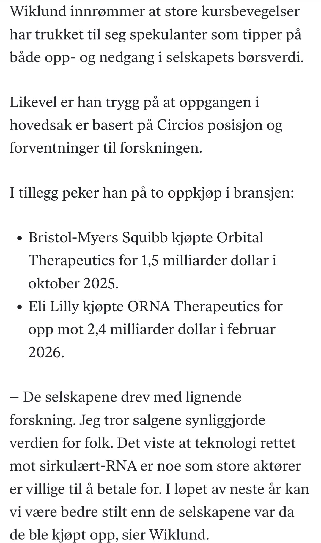 Det han er interessert i er at det er mange småaksjonærer som har kastet seg inn i en aksje, sannsynligvis fordi alle andre har gjort det, og at det nok er få (inkludert ham selv) som forstår noe særlig av hva Circio jobber med.