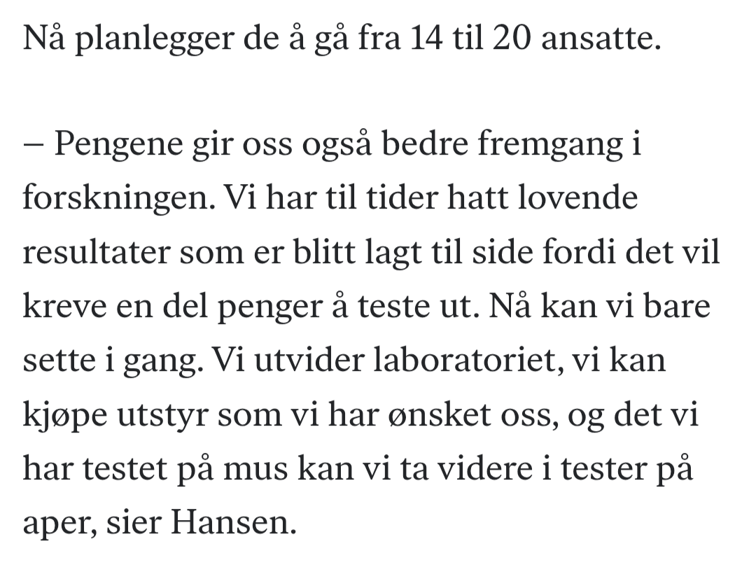 De skal ikke flotte seg. De trenger ikke mange aper, typ under 10 stk i noen få indikasjoner. Det må til for oss som ikke skal selge over børs, men til BP.