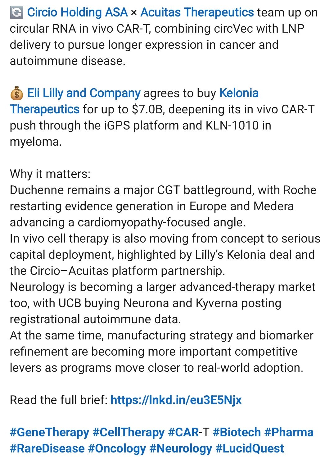Entos kjører prekliniske MDM-studier, og fikk blant annet støtte fra CureDuchenne omtrent samtdig som samarbeidet med Circio ble annonsert i april i fjor. Hadde vært greit med en oppdatering om hvordan det sporet står seg i dag. Dødt eller fortsatt aktivt ? Eli Lilly+Entos har også et samarbeid som begynner å dra på årene.