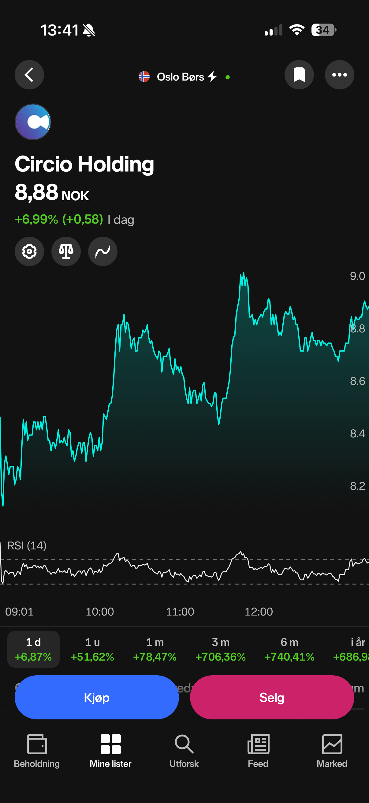 Og det er ikke handlet på bunnen, men tirsdag, da den tidlig brøt opp gjennom, og endte på, 9.