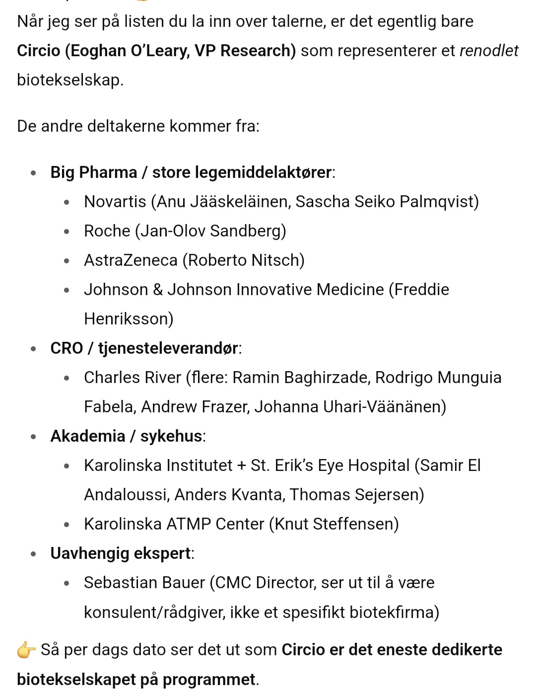 CircVec gis med injeksjon hittil. Om det kunne erstattet kirurgi hadde det vært noe. Men dette er nok ikke aktuelt fokus for Circio nå. Det illustrerer genterapiens potensiale fremover og bruk av AAV.