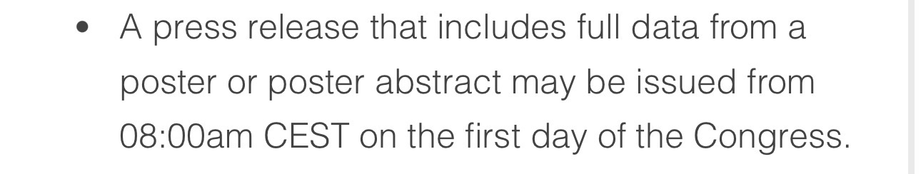 Abstract-teksten er låst etter innsendelse, men oppdatert data, nye figurer og “follow-up” kan vises på selve presentasjonen. Slike oppdateringer er embargo-belagt til kl. 08:00 CEST på presentasjonsdagen (tirsdag 7. oktober), deretter kan de deles offentlig.