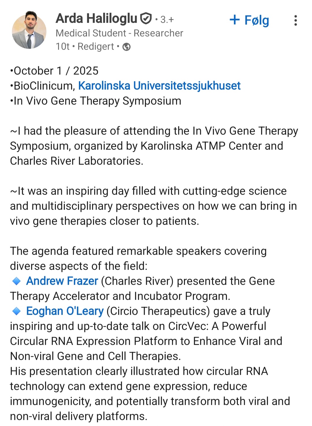 Hvis bare noe av fremtidig potensiale i Circio materialiserer seg, så tenker jeg at spesial-investorer lett klarer identifisere et så lavt priset selskap spesialisert på en teknologi som kan være mRNA overlegent.