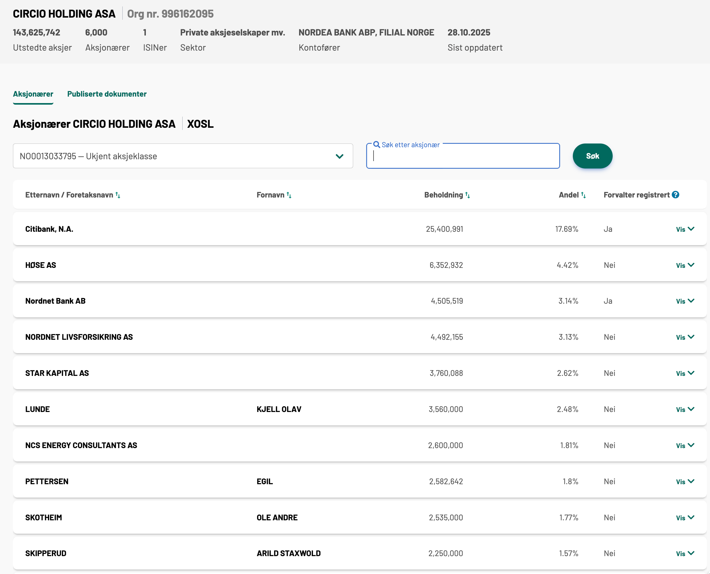Hva oppgis som totalt utestående aksjer i siste tilgjengelige aksjonærliste ?