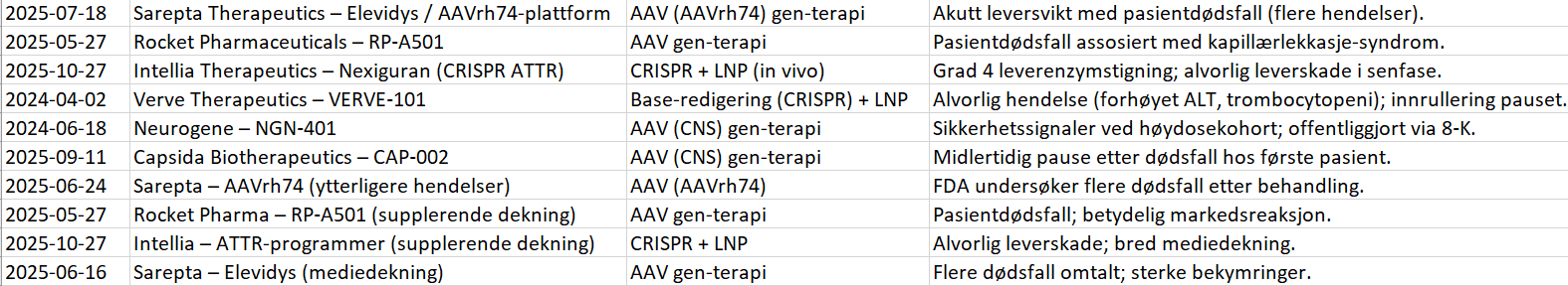 - Gene therapy toxicity / dosing problem og circRNA som løsning (publisert i dag, 28. oktober 2025)