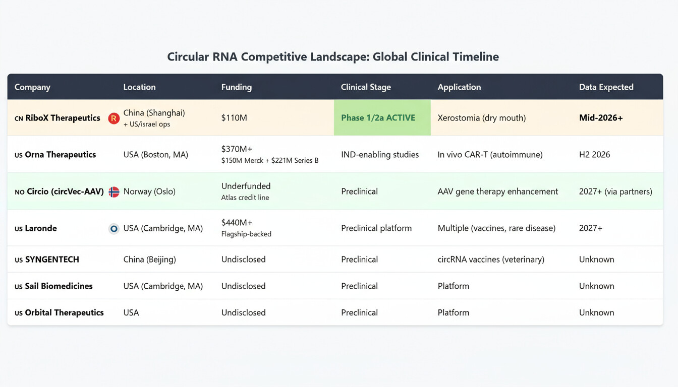 Det kan jo synes sannsynlig at i tillegg til disse to så vil neste “store” deal innen circular RNA sannsynligvis omfatte enten Pfizer, AbbVie, Roche, eller Sanofi som part i transaksjonen, f.eks i sammenheng med plutselige overraskelser fra on-going stealth-programmer. Av andre på tier 1+2 lista så har ingen av disse annonsert investeringer i circular RNA: Johnson & Johnson, AstraZeneca, GSK, Novo Nordisk, Takeda, Biogen, Vertex, og Amgen.