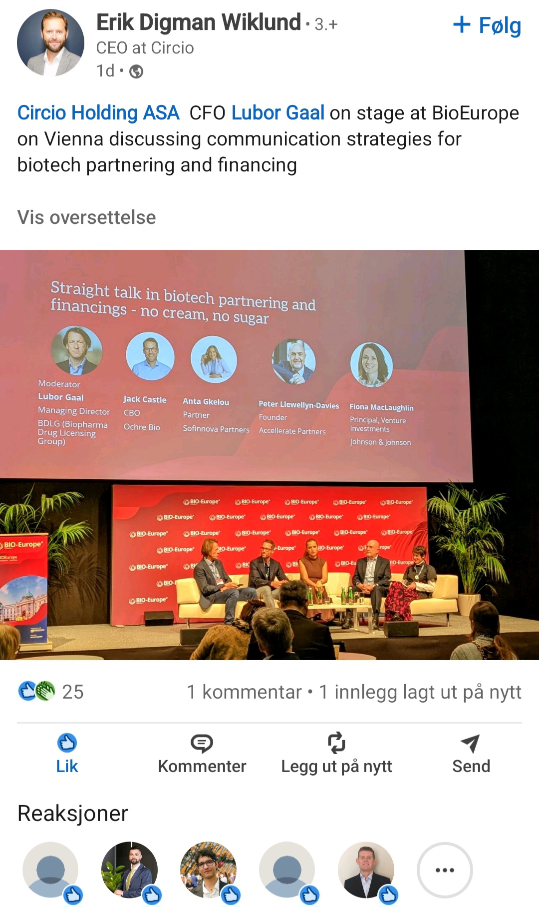 Sist sammen lignet jeg med tidligere Ultimovax (RIP). Sammenligner man nå med Lytix, så er dette selskapet verdt ca 4x mer enn Circio.