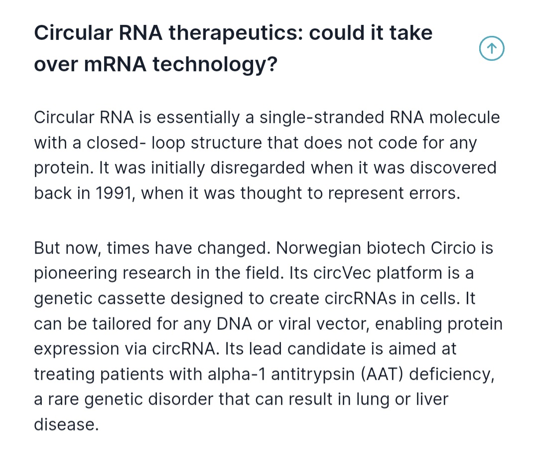Grundig om RNA og imponerende at Circio blir omtalt i dette selskapet. De må åpenbart ha markert seg for å bli tatt med i artikkelen på denne måten.