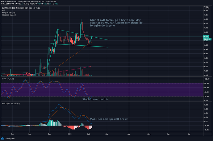 Holder et øye på 0.58 idag som potensiell b/o nivå om markedet liker dagens news. Bryter vi den idag kan vi nok se 0.80 om ikke alt for lenge.