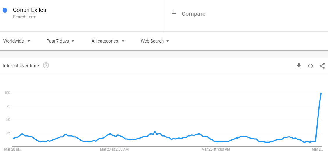 Grei respons i google trends på dette. Tenk reaksjonen når det faktisk er tilgjengelig. Håper Funcom har servere klare.